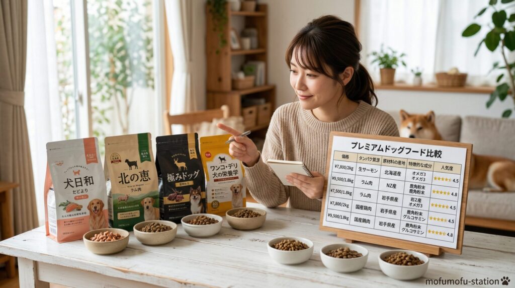 グラン・デリ(Gran Deli)フレシャスが気になる方のために、実際に人気のある他のドッグフードと比べてどこがどう違うのかをわかりやすく整理しました。定番の「ドギーマン 絹紗」「日本ペットフード ビタワン君のWソフト」「博多華味鳥 うまか(UMAKA)」と比べることで、成分や特徴、愛犬との相性がよりはっきり見えてきます。まずは各フードの特徴を比較してみましょう。