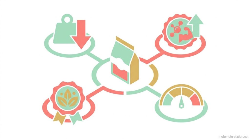 ここでは、迷ったときに選ぶべき具体的なフードと、通常ラインでは痩せにくい理由を順を追って説明していきます。