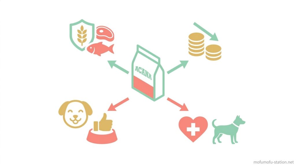 アカナの口コミが分かれるのは、単なる好みの問題ではなく、原材料や成分設計、価格設定といった特徴がはっきりしているためです。