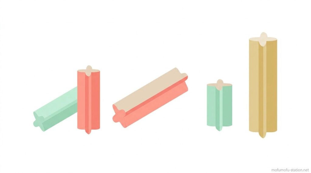 見た目が似ていても、サイズごとに長さや硬さが変わるため、ここが合っていないと食べにくさや丸飲みの原因になります。まずは自分の犬の体重に当てはまるサイズを基準に選ぶことが大切です。