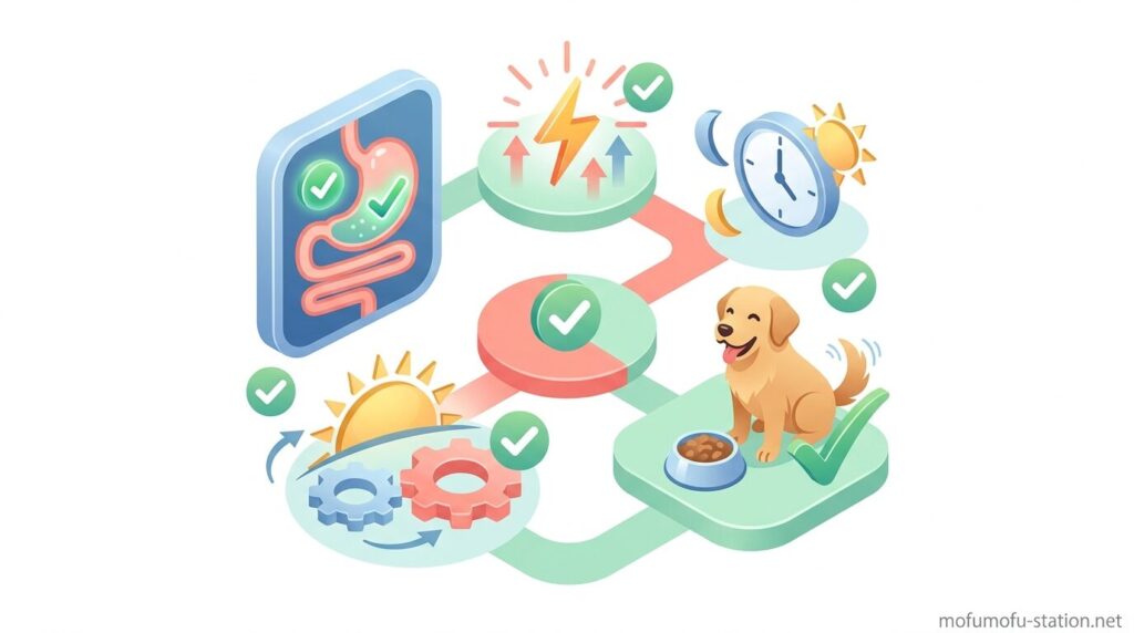 最終的には、食後30分〜2時間以内の体調変化を基準に判断し、吐き戻しや軟便が2日以上続く場合は時間を後ろにずらすなど、犬の反応に合わせて調整することが重要です。