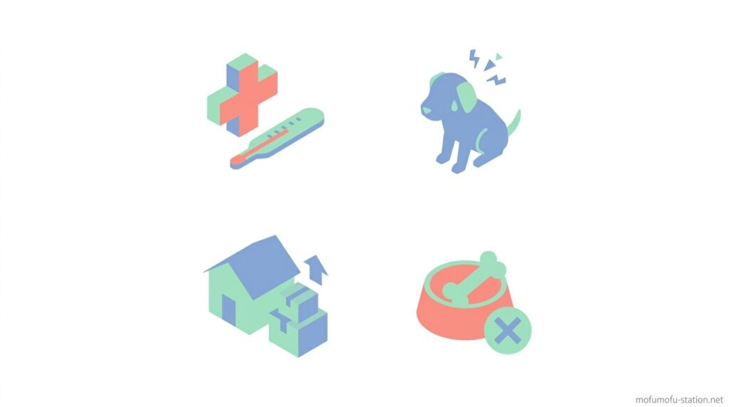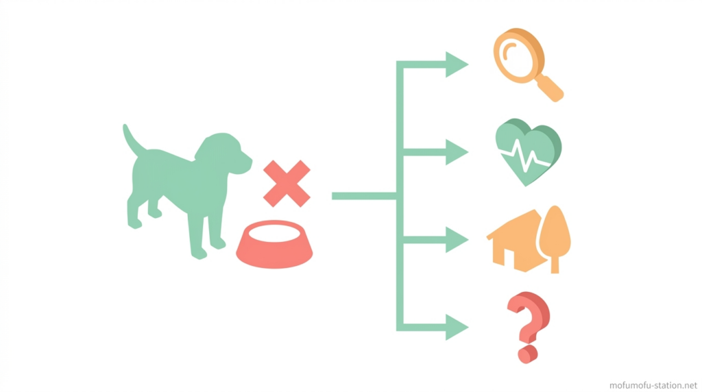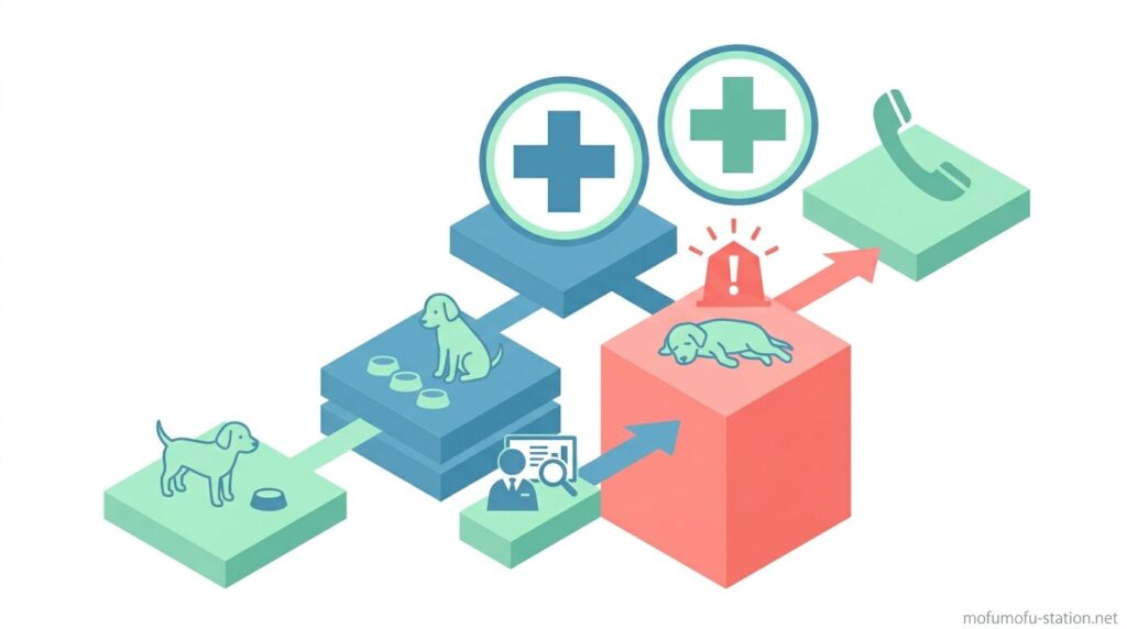 たとえば、しっぽを振っていつも通り遊ぶのにフードだけ残す場合と、寝ている時間が増えて散歩にも行きたがらない場合では、疑うべき原因や対応の優先度がまったく違います。