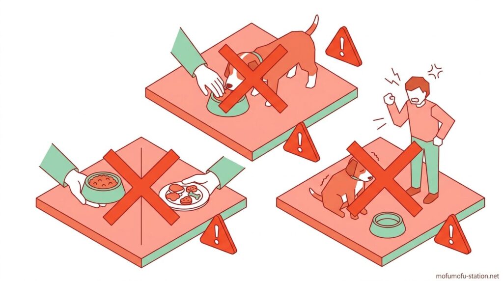 犬がご飯を食べないと、「少しでも食べてほしい」という気持ちから、つい自己流の対応をしてしまいがちですが、その行動が原因でさらに食べなくなるケースも少なくありません。