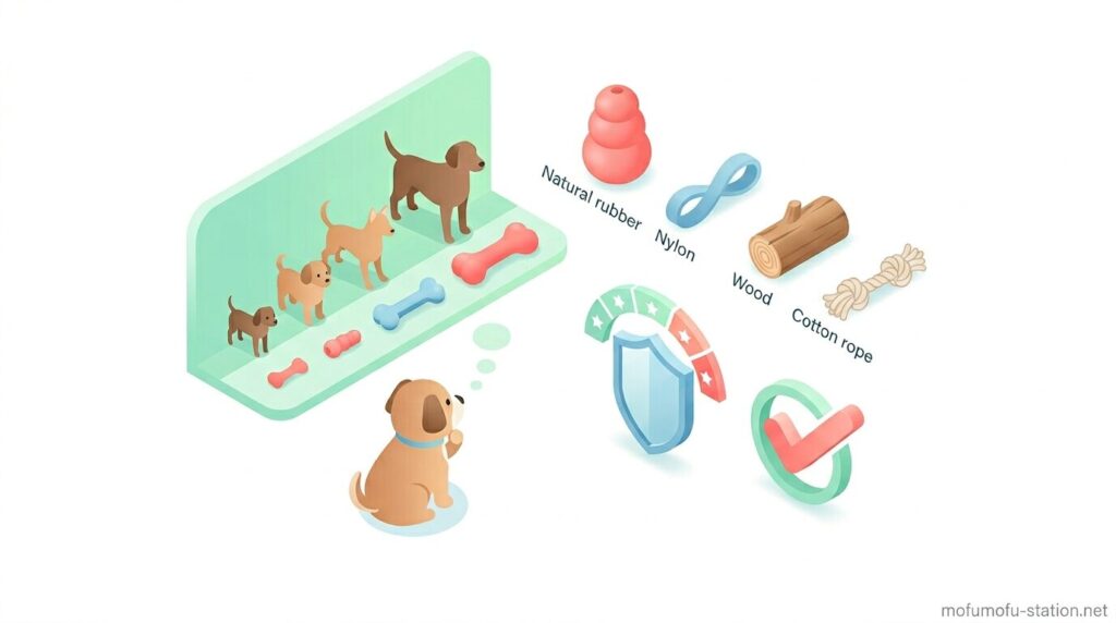 実際には、体格に対してどれくらいの大きさが必要か、噛む力に対してどの硬さが適しているか、飲み込めない形状かどうかといった具体的な基準で判断することで、事故リスクを減らしながら長く使えるおもちゃを選べます。