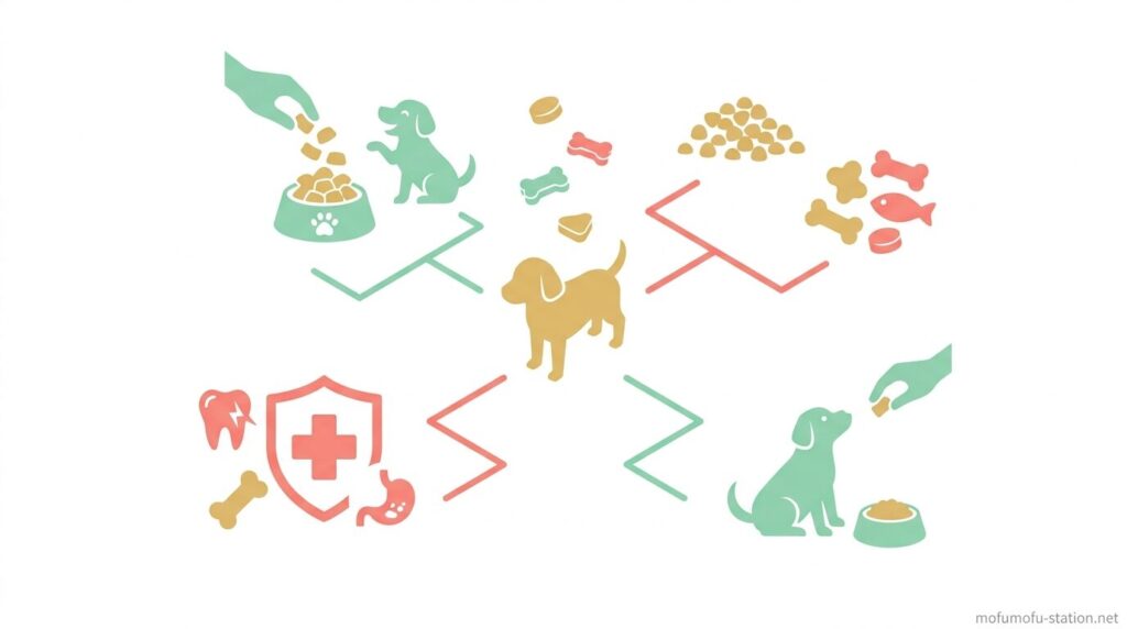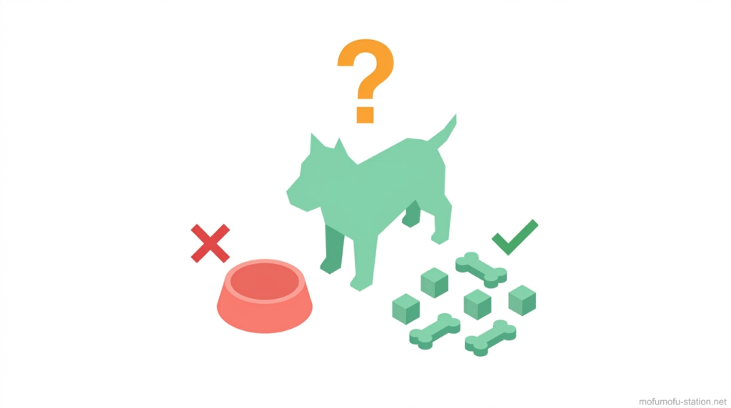犬がおやつしか食べない状態は、与え方・嗜好・体調の3つが重なって起こります。特に1日に複数回おやつを与える習慣や、高嗜好なおやつへの慣れがあると、主食を避ける行動が固定されます。