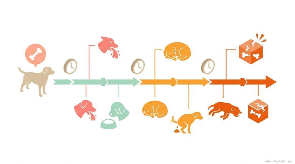 犬が鳥の骨を食べてしまった場合、「すぐに異変が出るのか、それとも時間が経ってからなのか」は判断に迷いやすいポイントです。