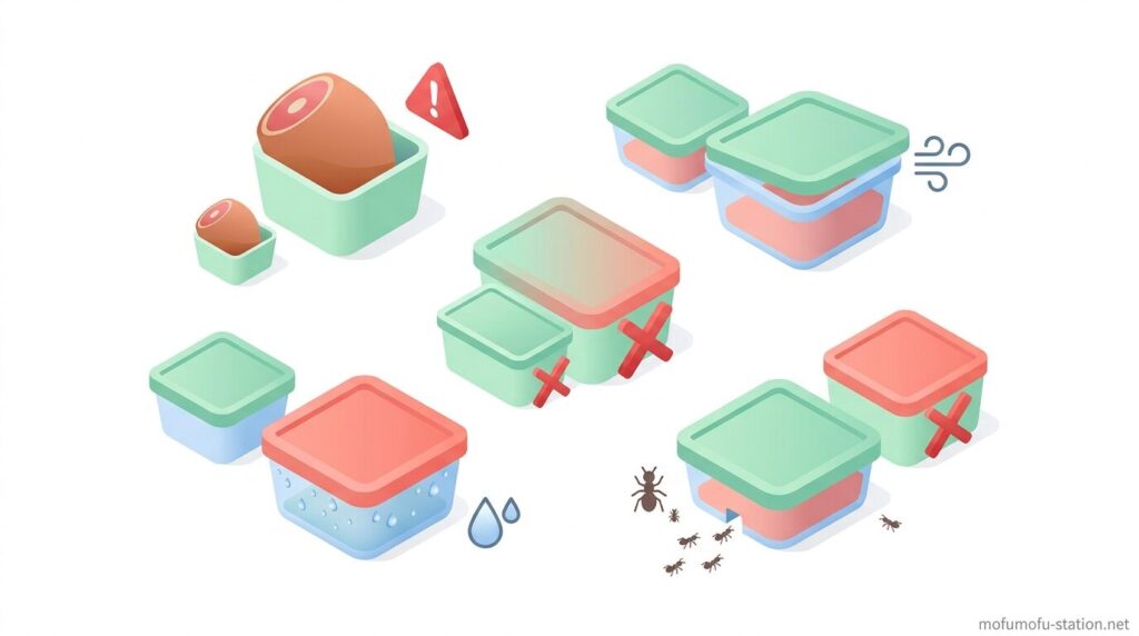 特に密閉性・容量・保管環境を考えずに選ぶと失敗しやすいため、どんなトラブルが起きやすいのかを事前に把握しておくことが重要です。