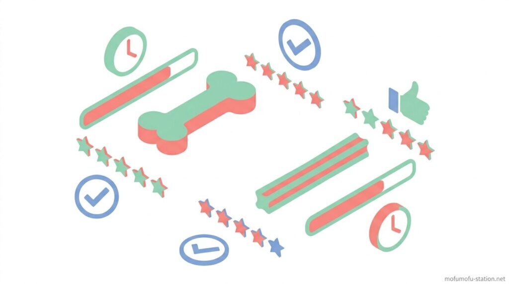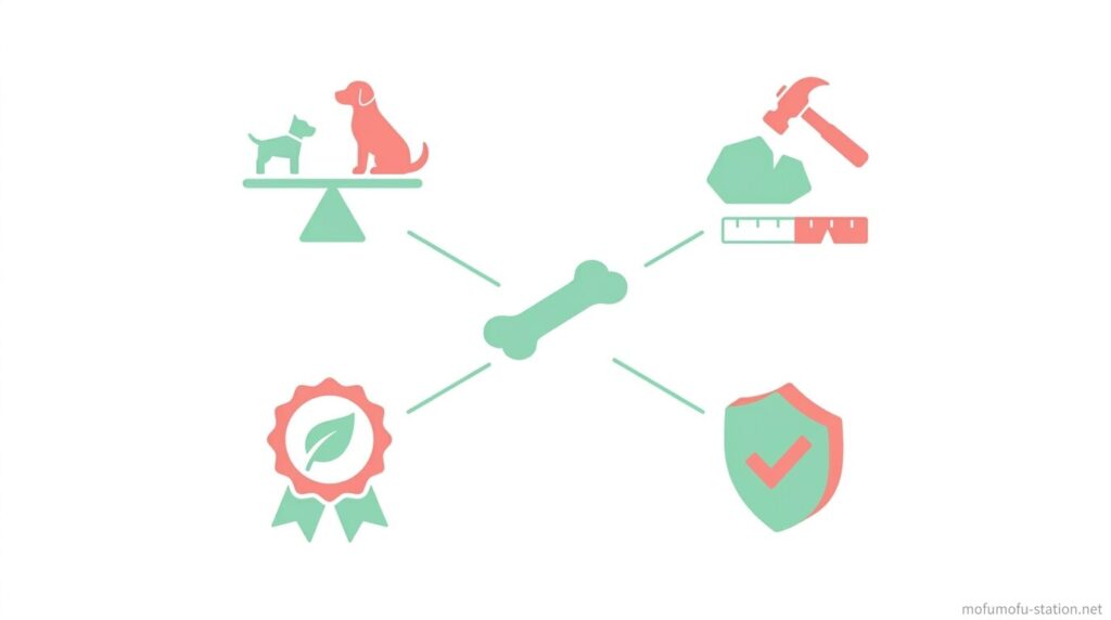 長持ちする犬用ガムを選ぶうえで重要なのは、「硬さ・素材・サイズ・構造」の4つを具体的に見極めることです。