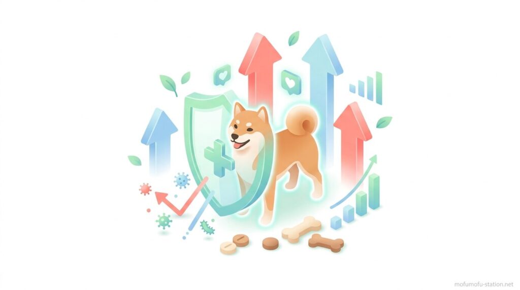 犬のおやつだけで免疫力を大きく上げることはできませんが、1日あたり体重5kgの犬で50〜70kcal以内に抑えた範囲で、乳酸菌やオリゴ糖、ビタミンEなどが含まれたおやつを継続して取り入れることで、腸内環境を整えるサポートにはつながります。