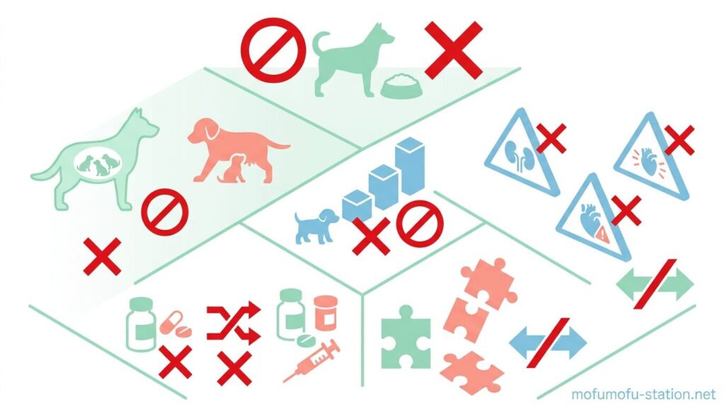 腎臓病でリン制限やタンパク質制限が必要な犬や、心臓病でナトリウム制限が必要な犬など、別の疾患で食事内容が数値管理されている場合には向いていません。