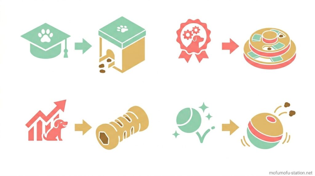 犬の知育玩具は、ただ与えるだけではなく「取り出せる難易度」と「使い方の調整」が重要です。