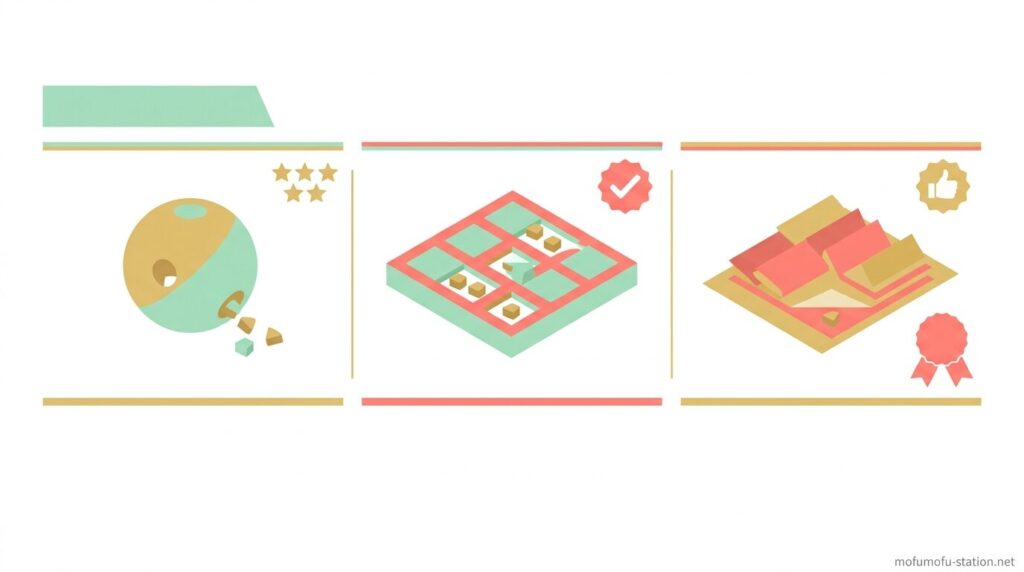 また、転がすタイプ・隠すタイプ・パズルタイプなど、それぞれ動きや使い方が異なるため、目的に応じて選ぶことで効果が大きく変わります。