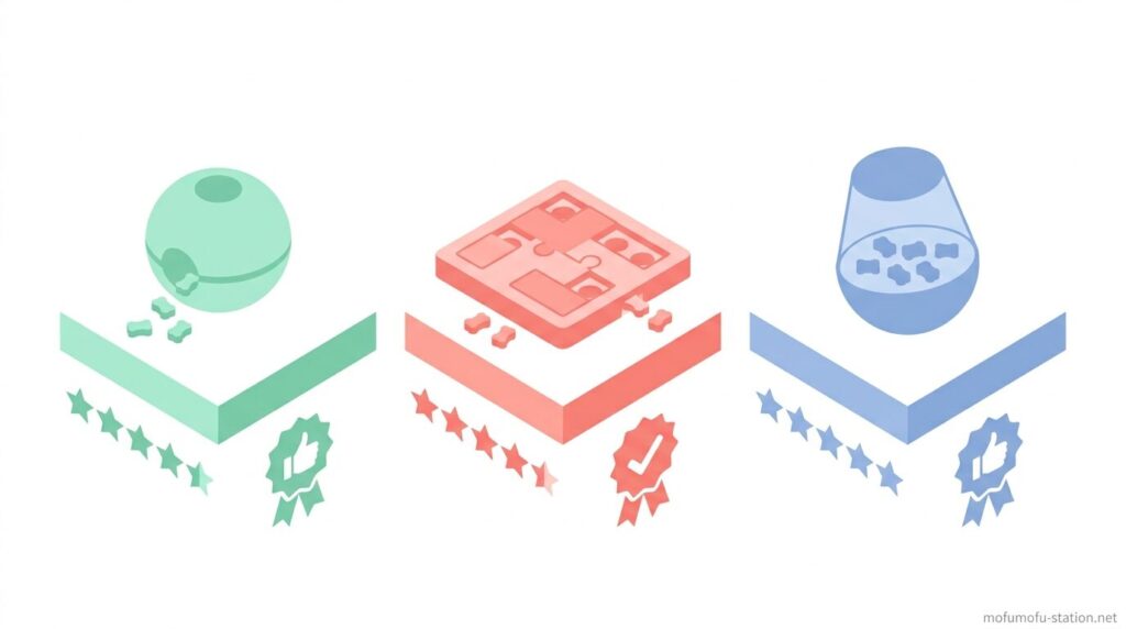おやつを入れるおもちゃは、難易度やサイズ、使うシーンによって合うタイプがはっきり分かれます。