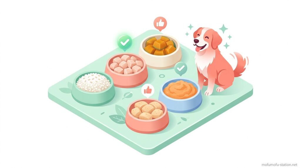 犬の消化を安定させるためには、脂質が少なく柔らかく調理された食材を選び、胃や腸に負担をかけない状態で与えることが重要です。