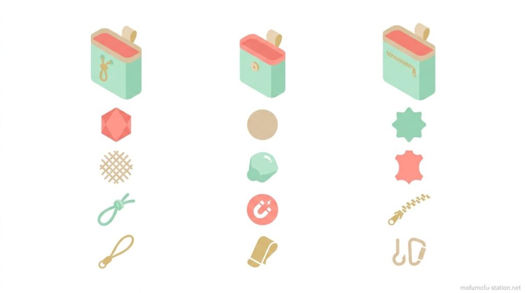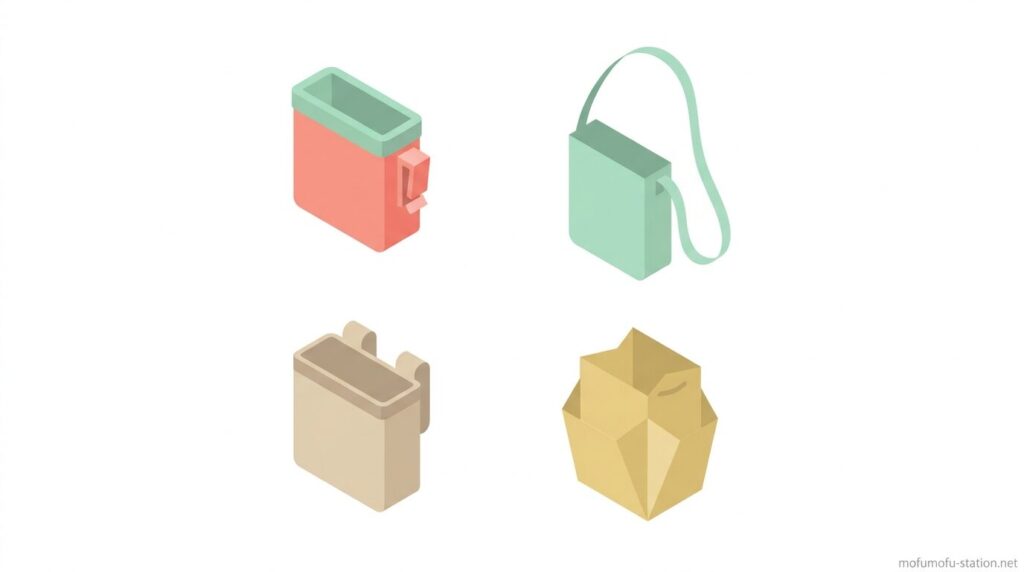 例えば、シリコン製は丸洗いできて清潔に保ちやすく、布製は軽くて持ち運びやすいのが特徴です。さらに、片手で開けやすいタイプかどうかでも使いやすさが変わります。