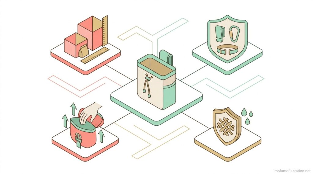 カインズのトリーツポーチは、素材・開閉方法・サイズの3つで使いやすさが大きく変わります。