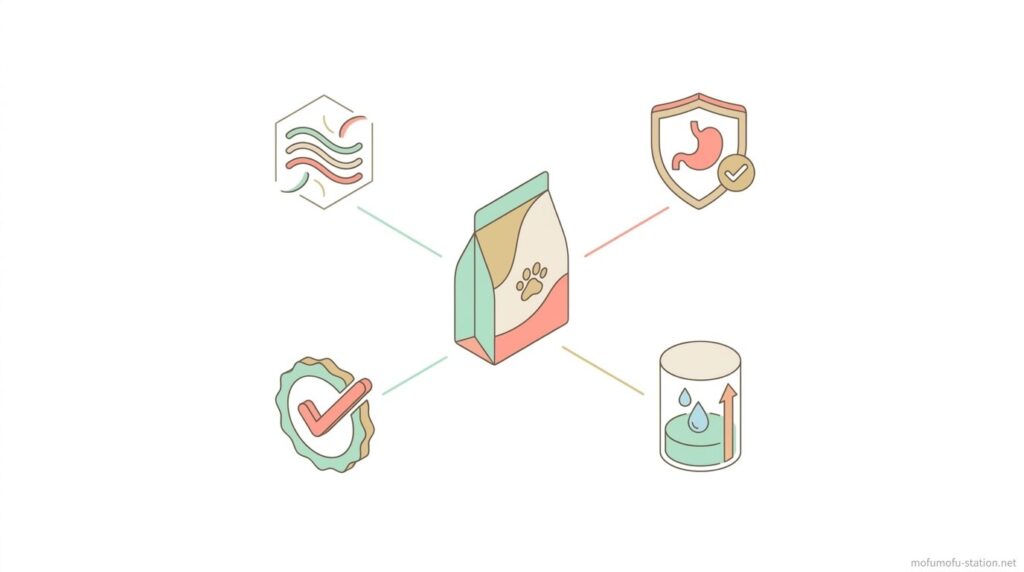 ここでは、迷わず選べるように、主原料・やわらかさ・添加物・価格の4つの基準に分けて判断ポイントを整理していきます。
