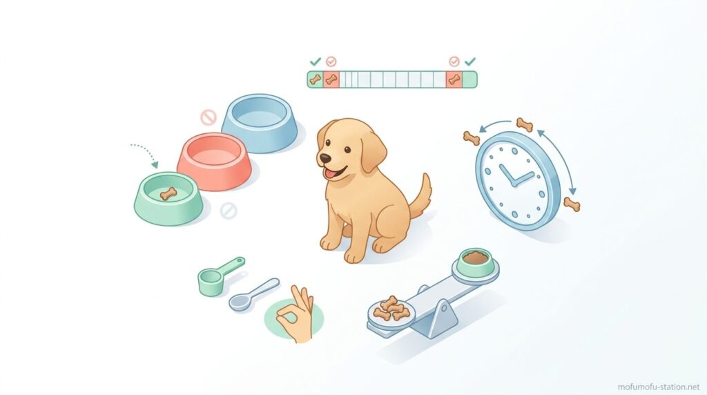子犬の時期は体がまだ成長途中のため、与えるタイミングや量を間違えると、食事のバランスが崩れたり、食べムラが出る原因になります。