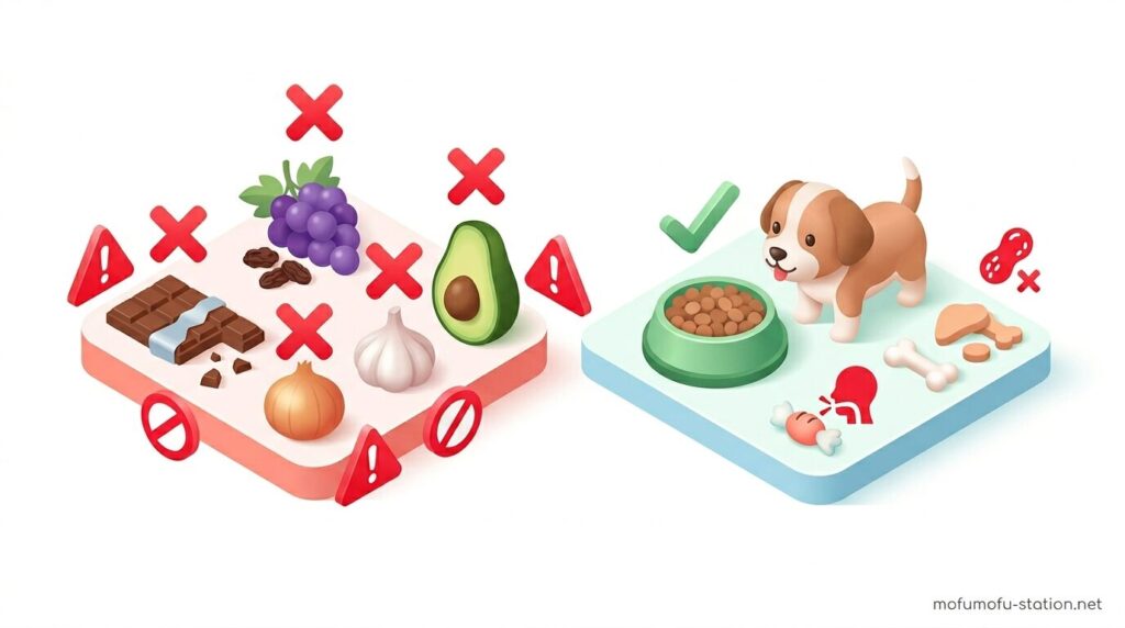 子犬に与えてはいけない食材は、少量でも中毒や消化障害を引き起こす可能性があるため、事前に把握しておくことが重要です。特に人間用の食品や甘味料が含まれるおやつはリスクが高いため、原材料を確認して確実に避ける必要があります。