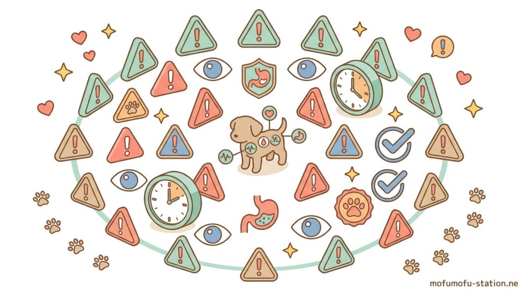 フードの切り替えは正しい手順で進めても、体調の変化を見ながら調整することが重要です。便の状態や食欲に異変が出たまま進めてしまうと、消化不良や体調不良につながる可能性があります。