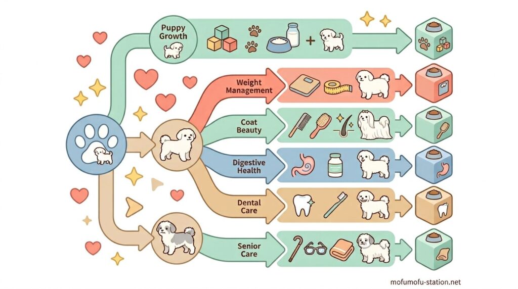 ここでは、マルチーズ特有の体質やよくある悩みを踏まえて、どのようなフード選びが重要になるのかを具体的に見ていきます。