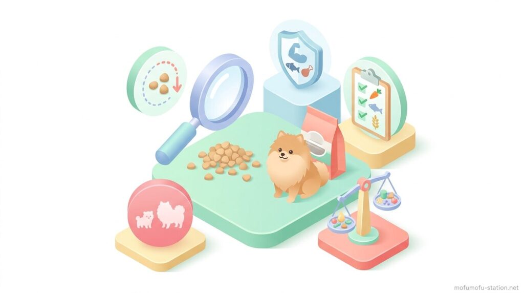 ポメラニアンの体格や食事量に合うドッグフードを選ぶには、栄養バランスと粒の大きさを具体的な基準で判断することが重要です。