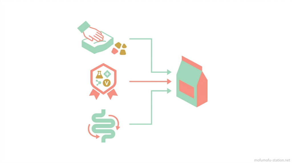 迷った場合は「今いちばん困っている悩み」を基準に選べばOKです。それだけで、合わないフードを選ぶリスクは大きく減らせます。
