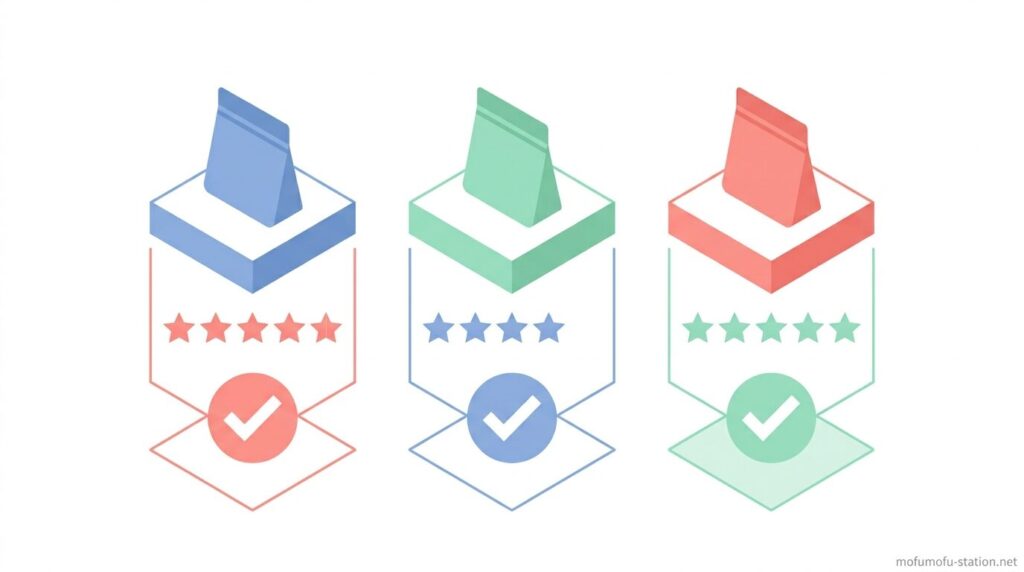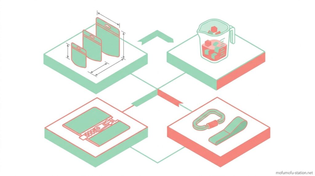 ただし、見た目が似ていても、口の開きやすさやサイズ感、装着方法によって使い勝手には差が出ます。選び方を間違えると「取り出しにくい」「中がベタつく」といった使いにくさにつながることもあります。