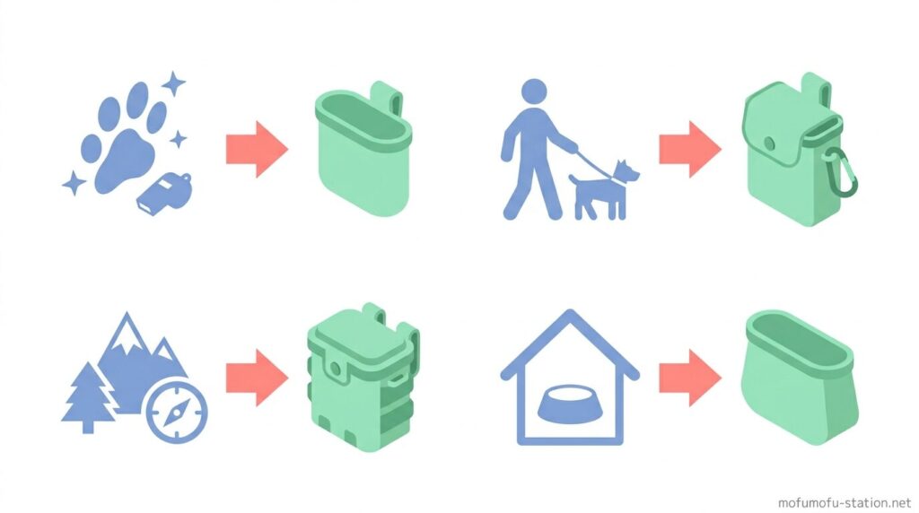 シリコン製トリーツポーチは使う場面によって求められる使い勝手が変わるため、用途に合わせて選ぶことが重要です。